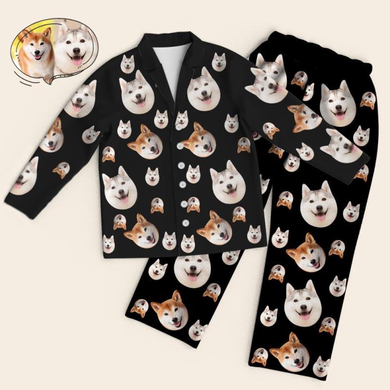 Custom Face Long Sleeve Pajamas Sleepwear Set - Funny Dog Face