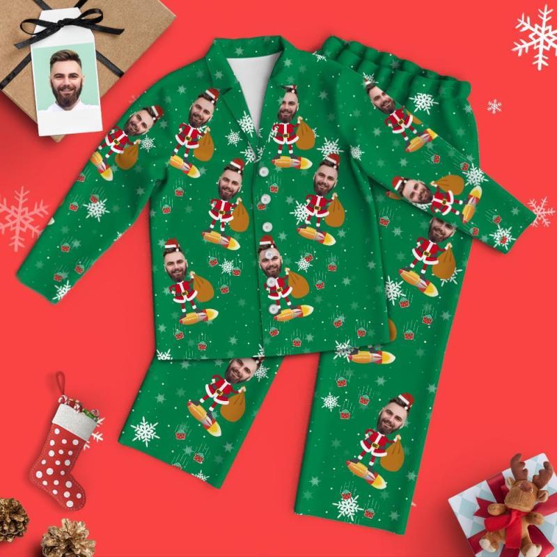 Custom Face Santa Pajamas Family Set - Green Santa Claus