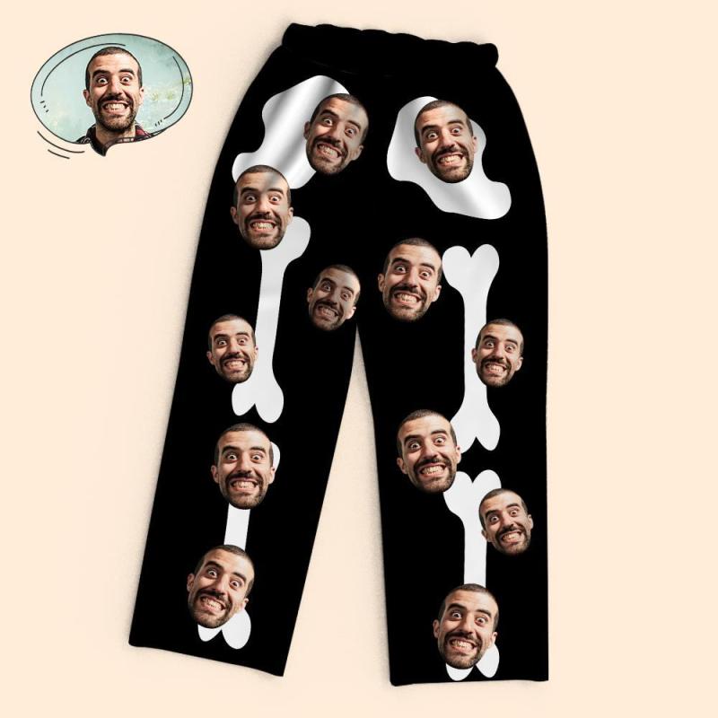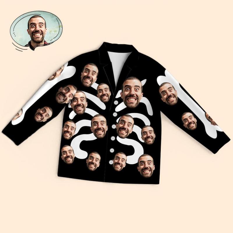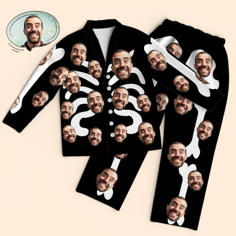 Custom Face Long Sleeve Pajamas Sleepwear Set - Halloween Skeleton