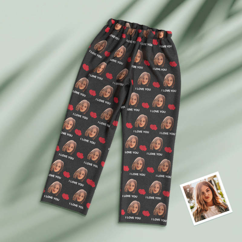 Custom Face Long Sleeve Pajamas Sleepwear Set - I Love You