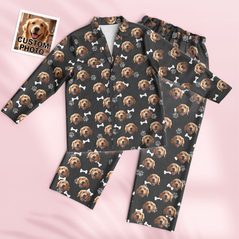 Custom Face Long Sleeve Pajamas Sleepwear Set Personalized Photo Bone Pajamas