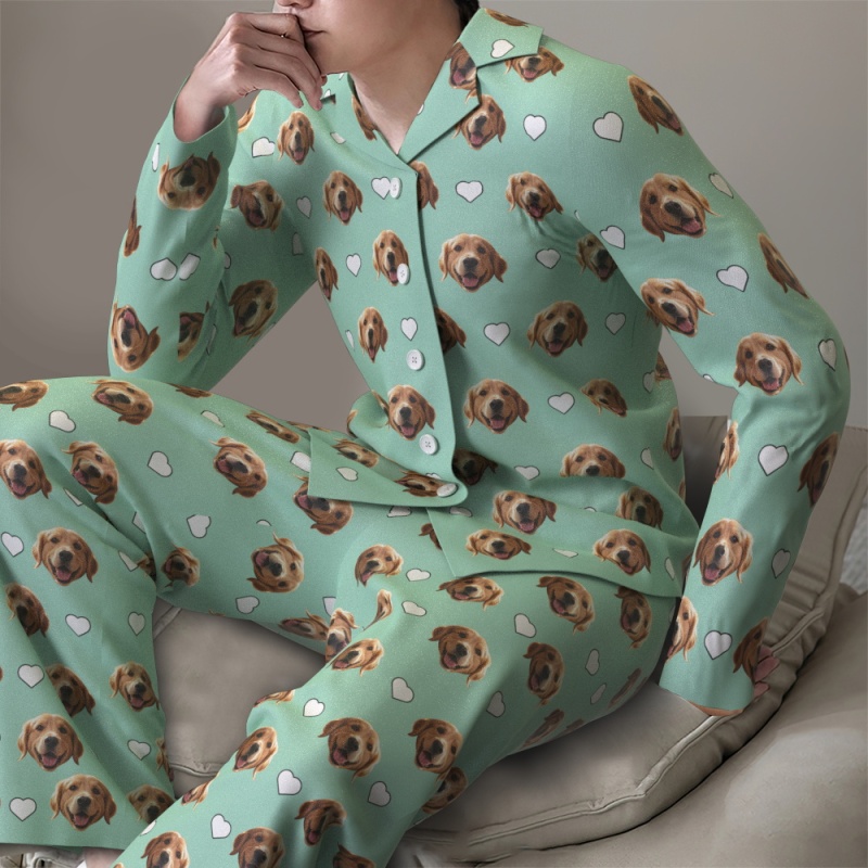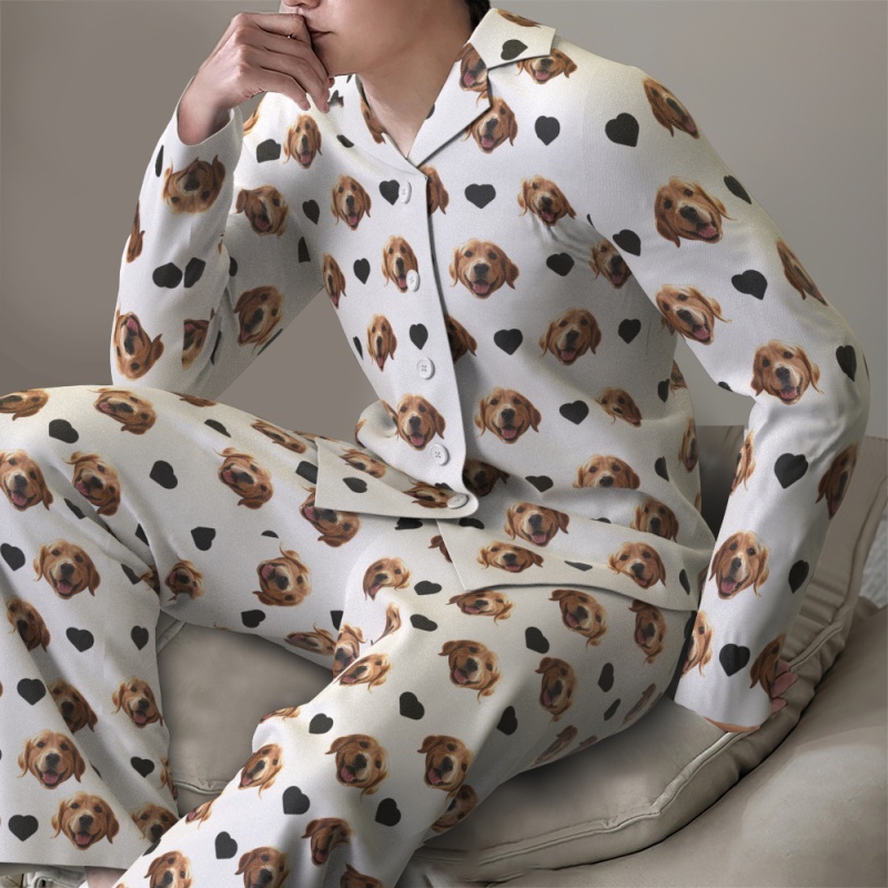 Custom Face Long Sleeve Pajamas Sleepwear Set Personalized Photo Heart Pajamas