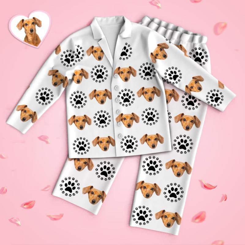 Custom Face Long Sleeve Pajamas Sleepwear Set - Pet Dog Footprint