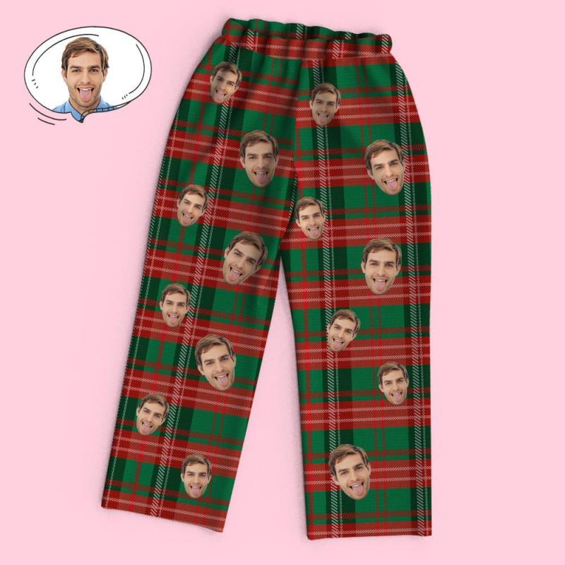 Custom Face Long Sleeve Pajamas Sleepwear Set - Red Green Christmas Plaid