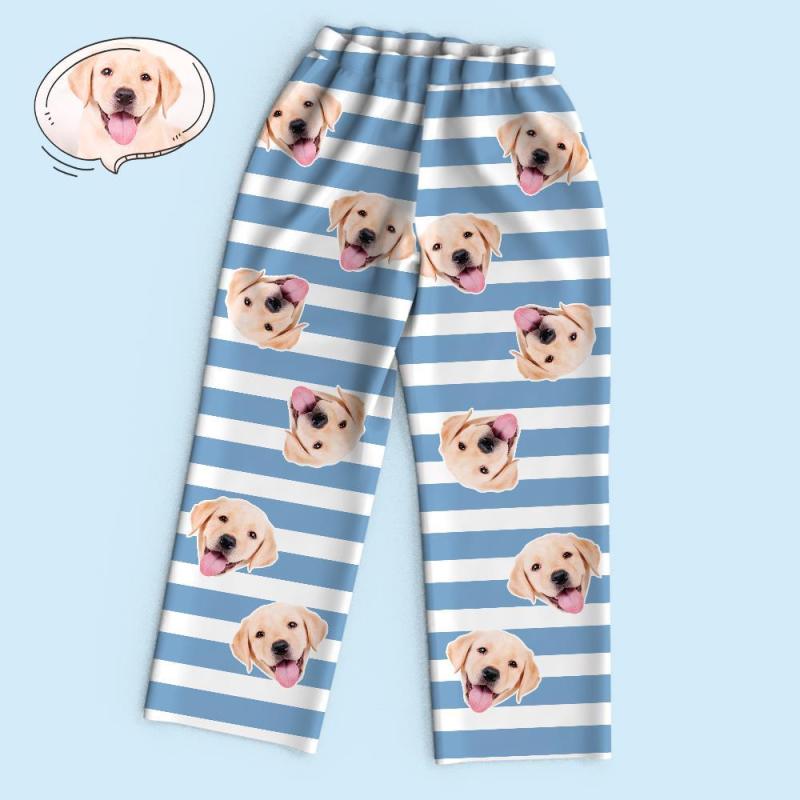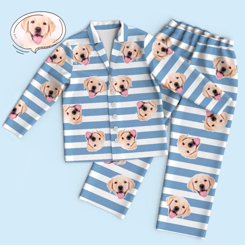 Custom Face Long Sleeve Pajamas Sleepwear Set - Stripe Dog