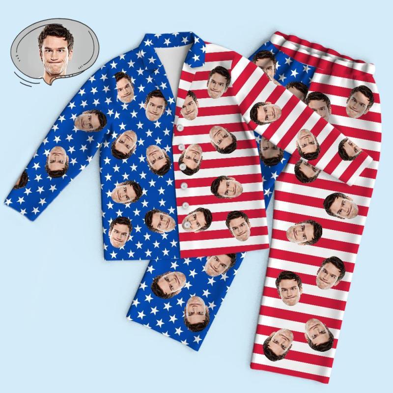 Custom Face Long Sleeve Pajamas Sleepwear Set - USA Flag