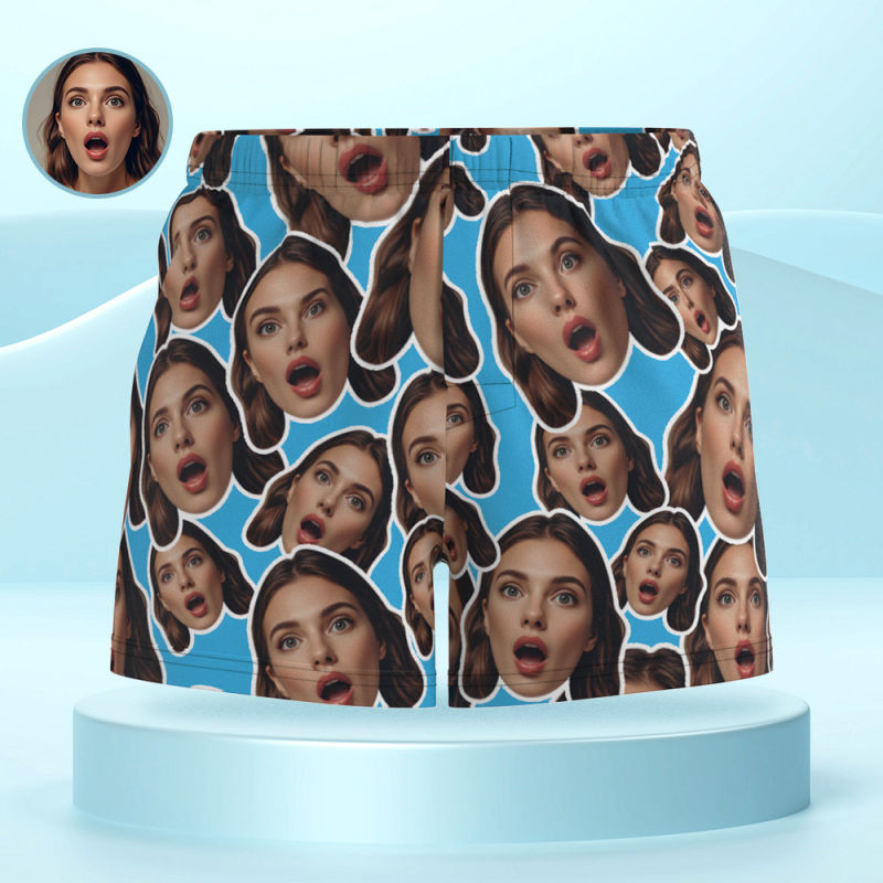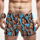 Custom Face Mash Blue Boxer Shorts Personalized Waistband Casual Underwear Valentine for Him