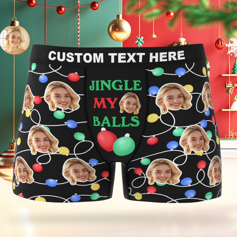 Custom Face Men's Boxer Underwear Christmas Light Santa Gift JINGLE MY BALLS Underwear Personalized Photo Funny Men's Boxer Briefs Christmas Valentine Gift