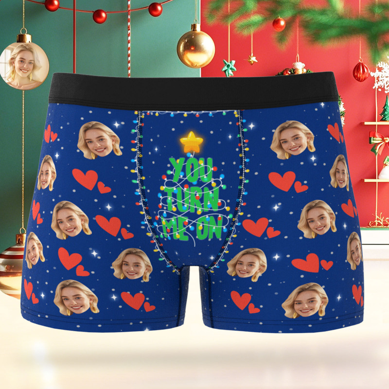 Custom Face Men's Boxer Underwear Santa Gift You Turn Me On Personalized Photo Funny Men's Boxer Briefs Christmas Valentine Christmas Gift