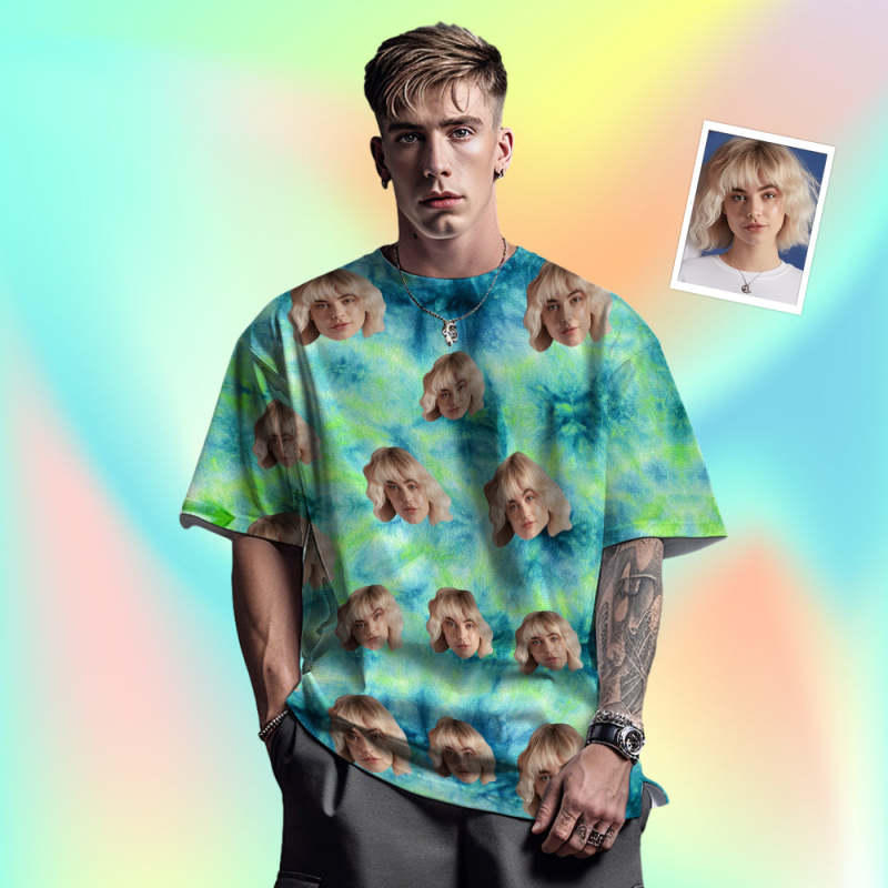 Custom Face Men's T-shirt Personalized Photo Funny Tie Dye T-shirt Gift For Men