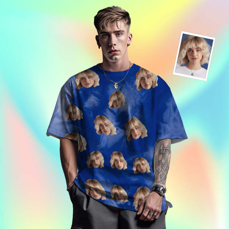 Custom Face Men's T-shirt Personalized Photo Funny Tie Dye T-shirt Gift For Men Dark Blue