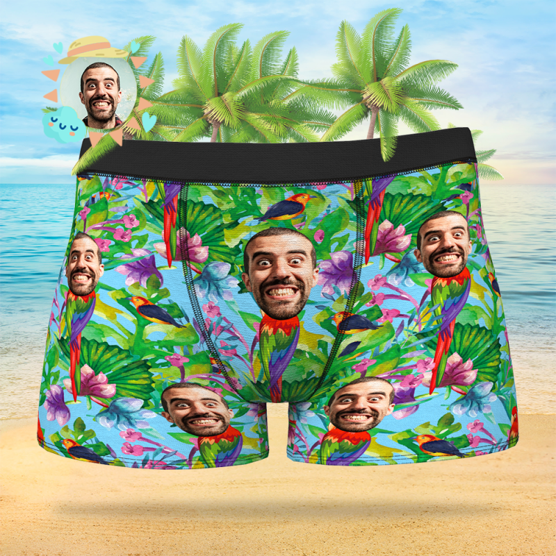 Custom Face On Boxer Shorts Men's Gifts Photo Boxer Briefs - Parrot