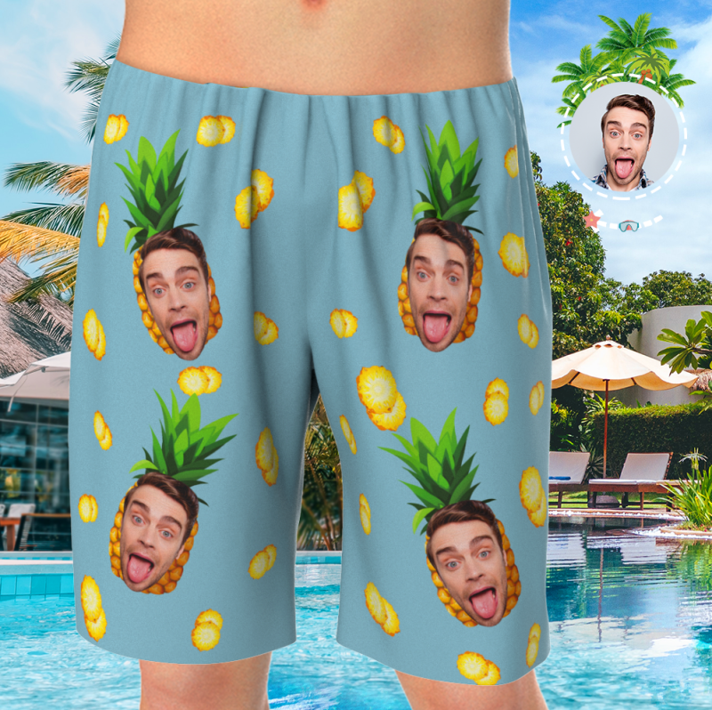 Custom Face On Pajamas Set, Short Sleeve Sleepwear, Button-Down Nightwear - Pineapple
