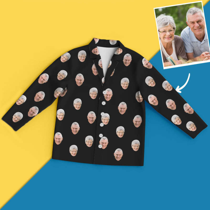 Custom Face Pajamas Colorful Long Sleeve Pajamas Happy Grandparents Day