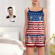 Custom Face Pajamas Suspender Sleepcoat Shorts Lingerie Set Summer Sleepwear - USA Flag