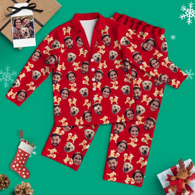 Custom Face Christmas Long Sleeve Pajamas - Flatbed Dogs