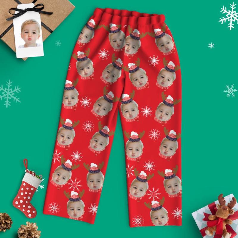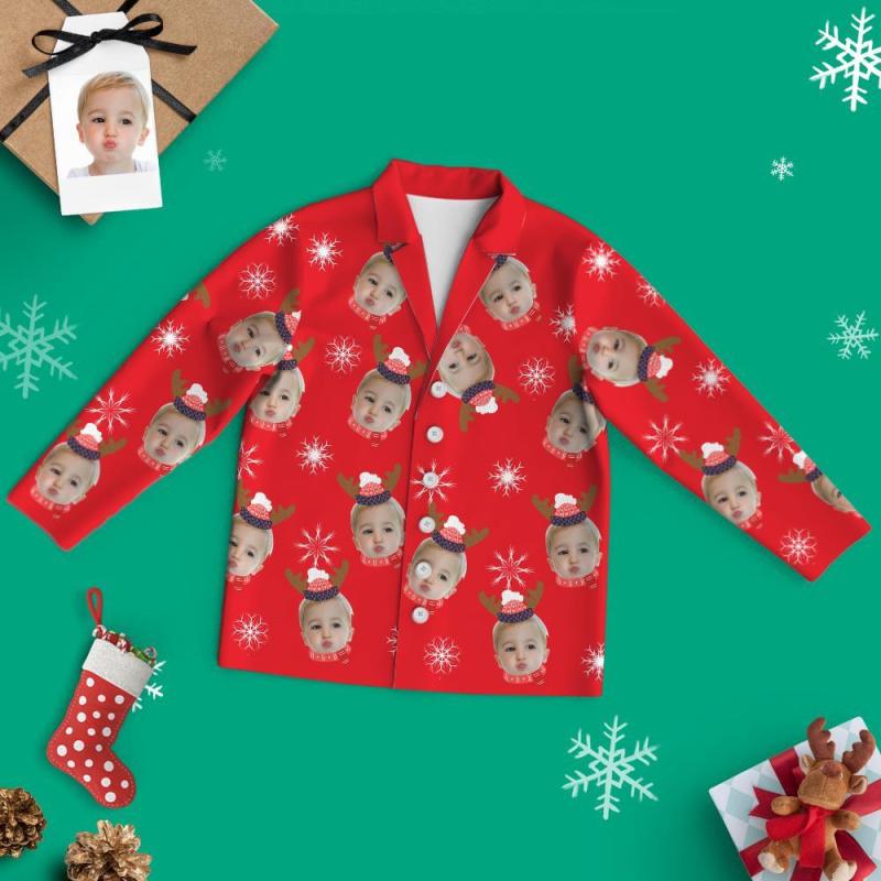 Custom Face Christmas Long Sleeve Pajamas - Reindeer Hats
