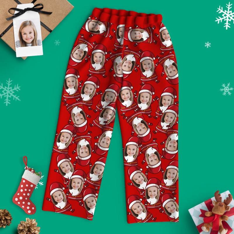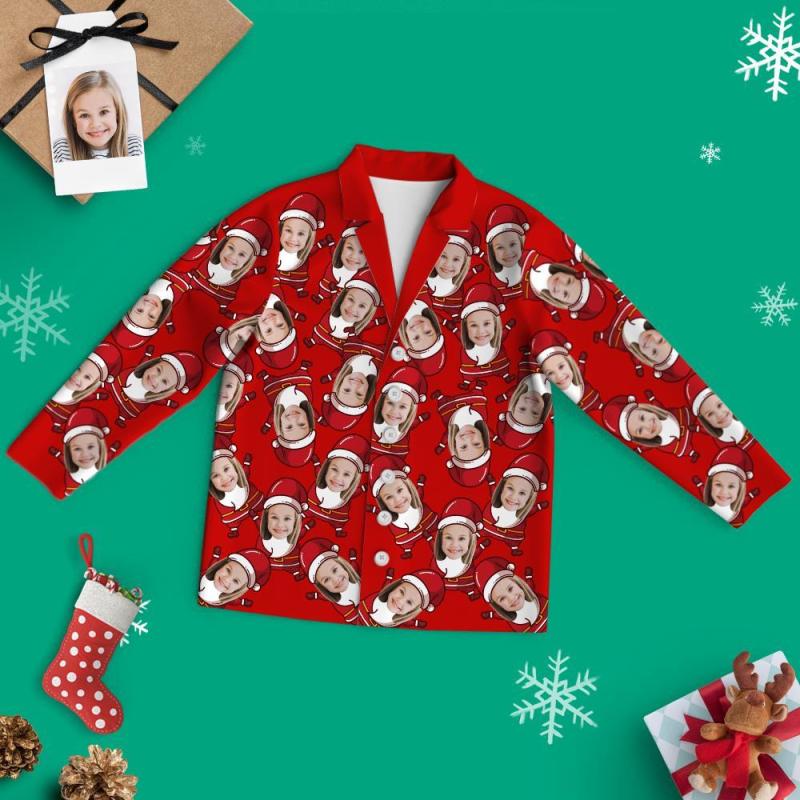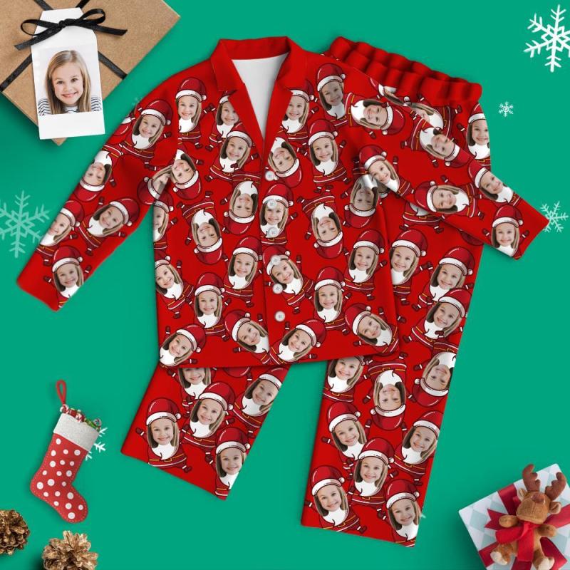 Custom Face Christmas Long Sleeve Pajamas - Santa Suit