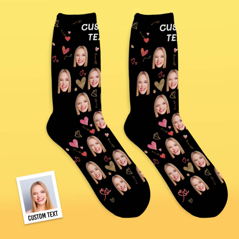 Custom Face Socks Breathable Photo Socks Romantic Heart Pattern