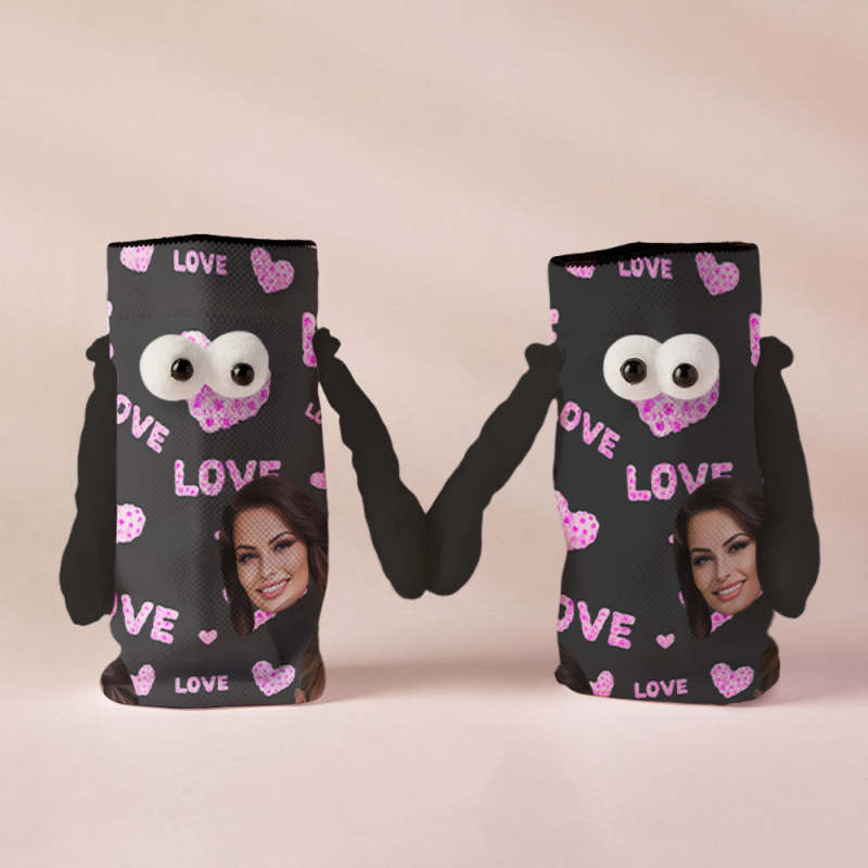 Custom Face Socks Funny Doll Mid Tube Black Socks Magnetic Holding Hands Socks Pink Love Valentine's Day Gifts