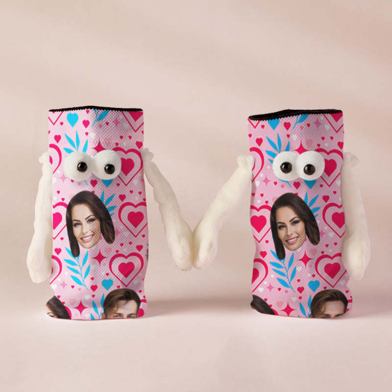 Custom Face Socks Funny Doll Mid Tube Socks Magnetic Holding Hands Socks Double Love Valentine's Day Gifts
