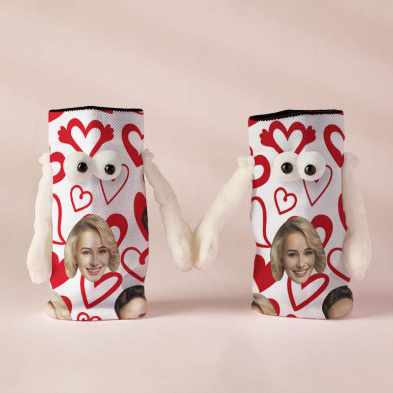 Custom Face Socks Funny Doll Mid Tube Socks Magnetic Holding Hands Socks Red Heart Valentine's Day Gifts
