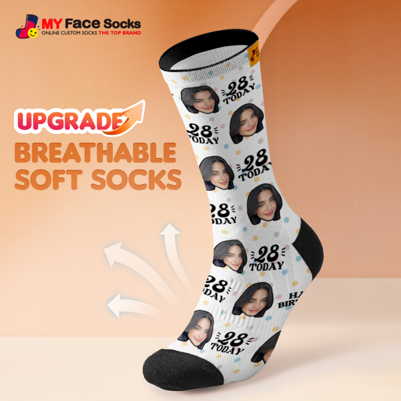 Custom Face Socks Gray Birthday Socks Personalized Birthday Polka Dot Socks with Faces Photo Funny Gift Photo Birthday Socks
