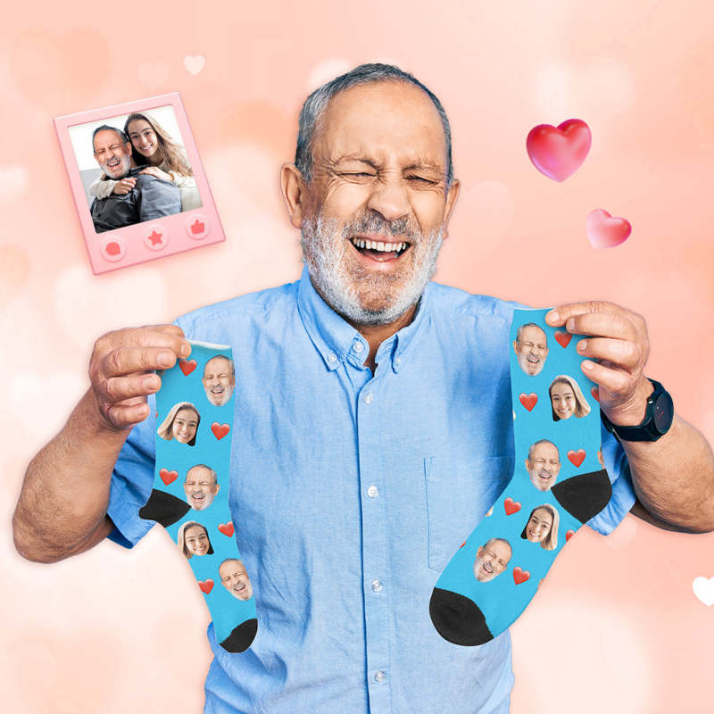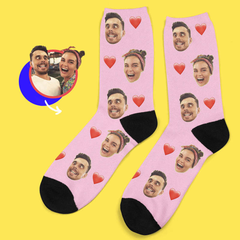 Custom Face Socks Add Pictures and Name Heart