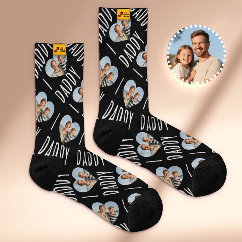 Custom Face Socks I Love Daddy Face Socks Photo Print Socks Colorful Dad Socks Personalized Fathers Day Gift