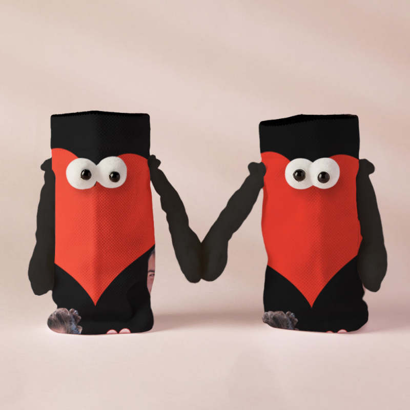 Custom Face Socks Magnetic Holding Hands Suction Funny Holding Hands Socks Lovely Socks for Couple Heart