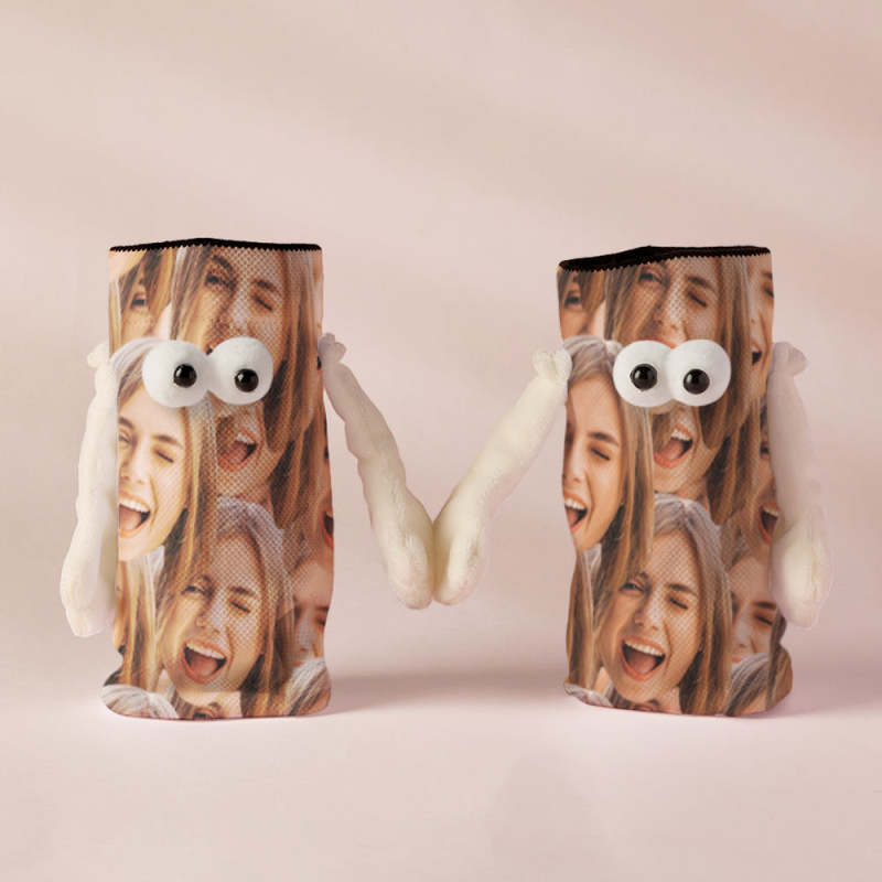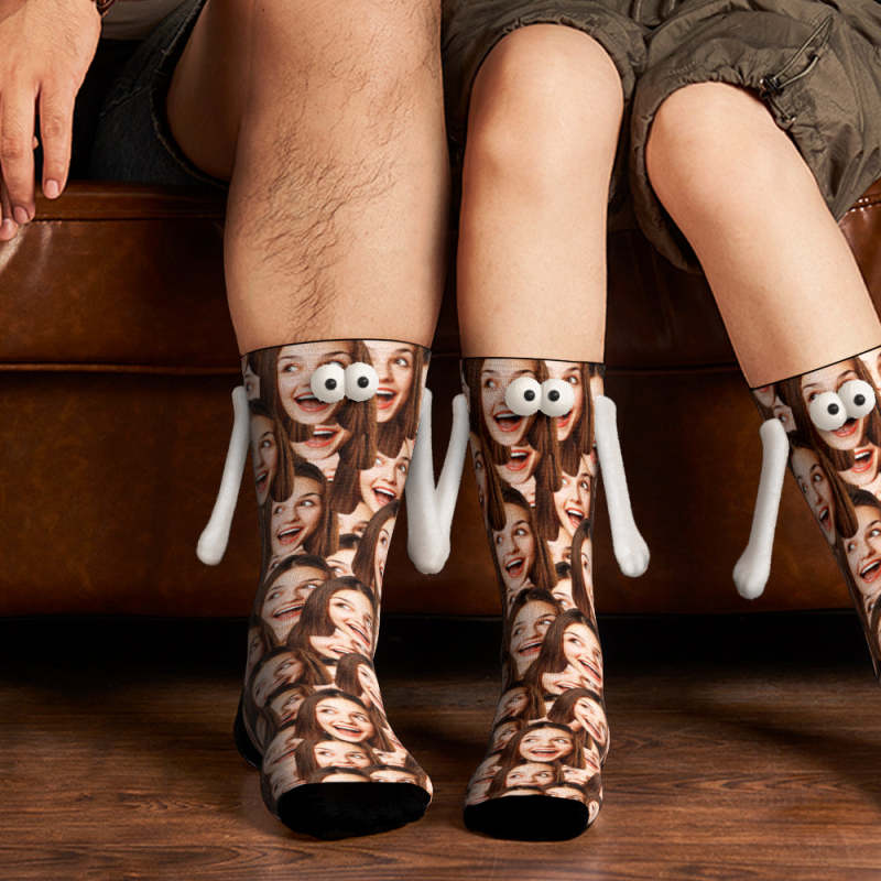 Custom Face Socks Magnetic Holding Hands Suction Funny Holding Hands Socks Lovely Socks for Couple Mash Face