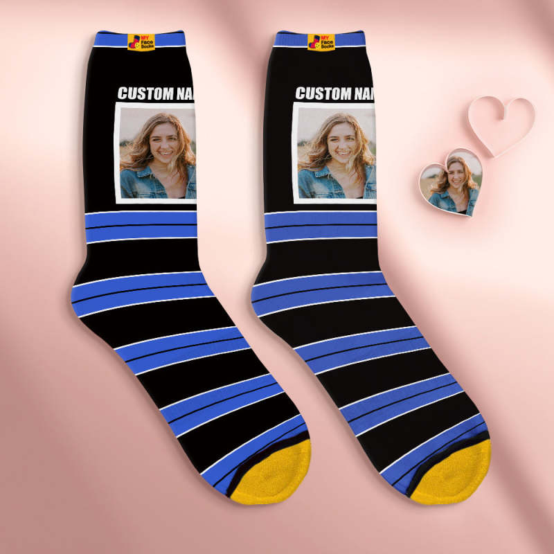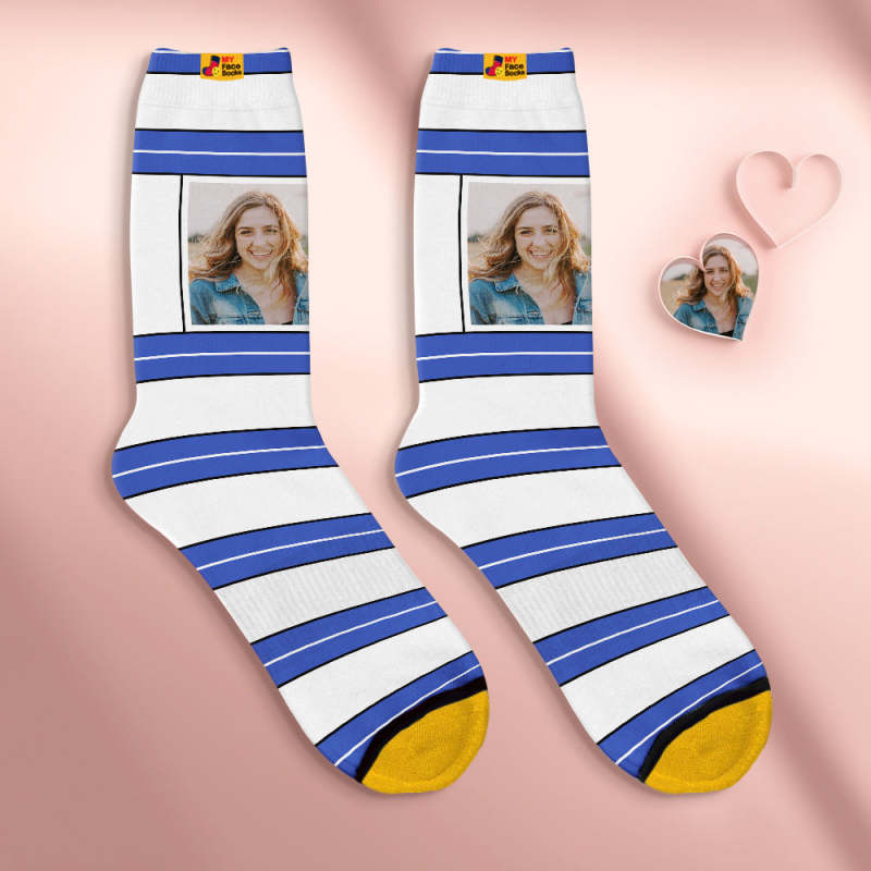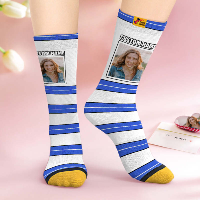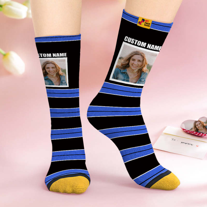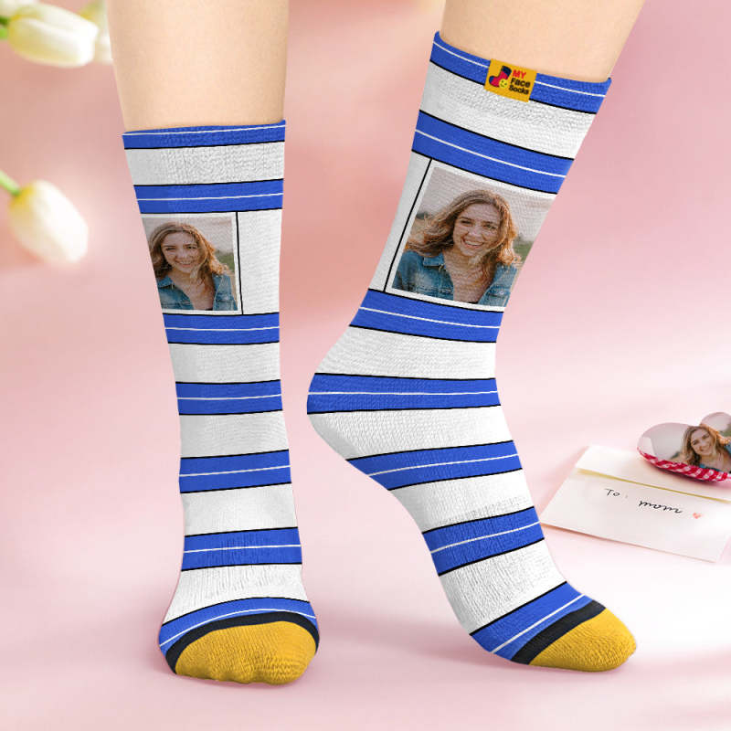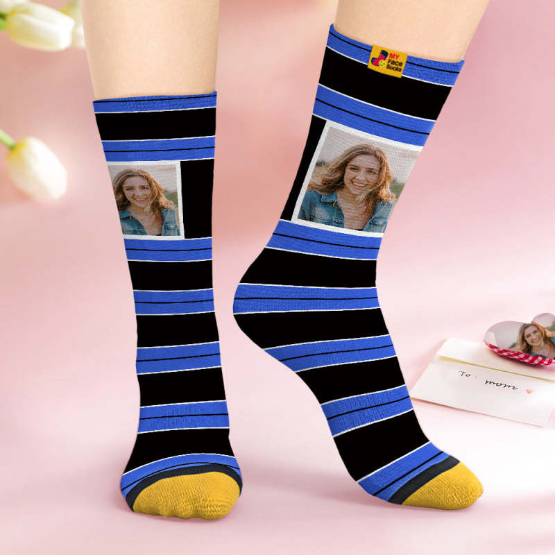 Custom Face Socks Personalized Mother's Day Gifts 3D Digital Printed Socks For Lover-STRIPED