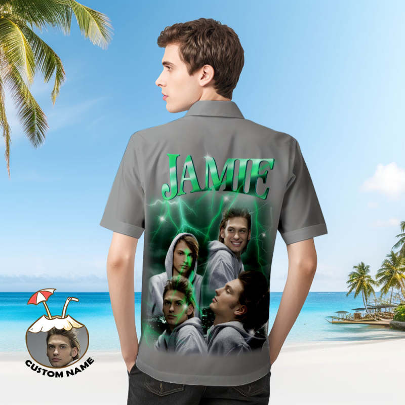 Custom Photo and Text Hawaiian Shirts Personalized Photo Gift Men's Vintage Personality Lightning Shirts Valentines Day Gift