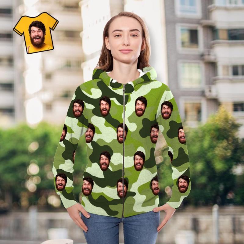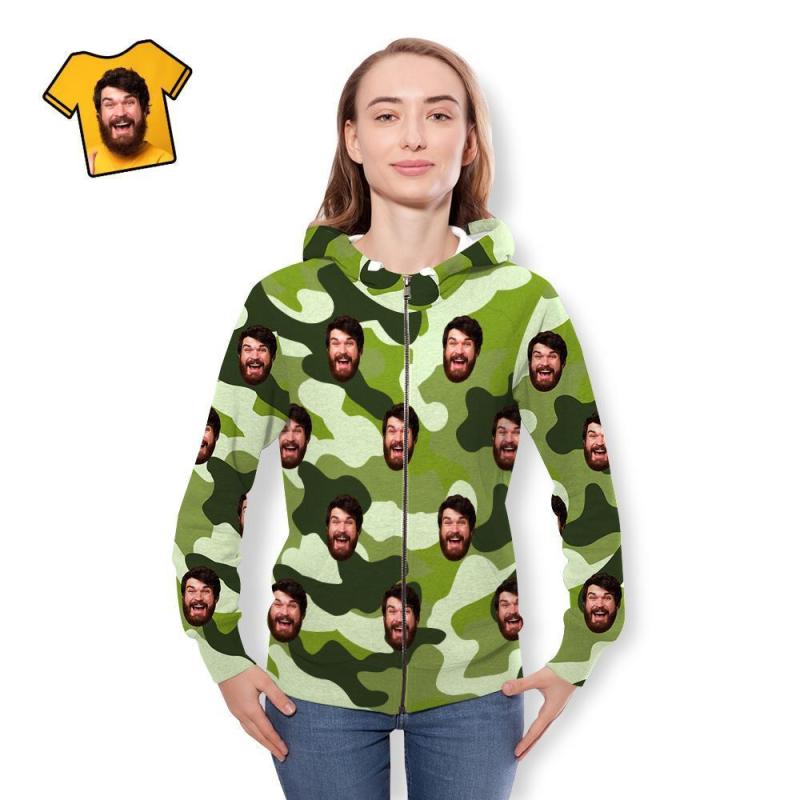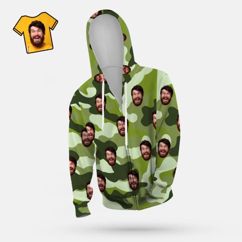 Custom Face Unisex Hoodie Casual Printed Auqamarin Camouflage