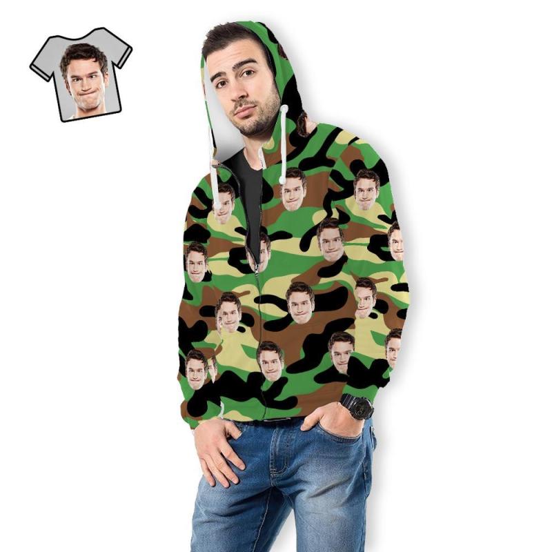 Custom Face Unisex Hoodie Casual Printed Dark Green Camouflage