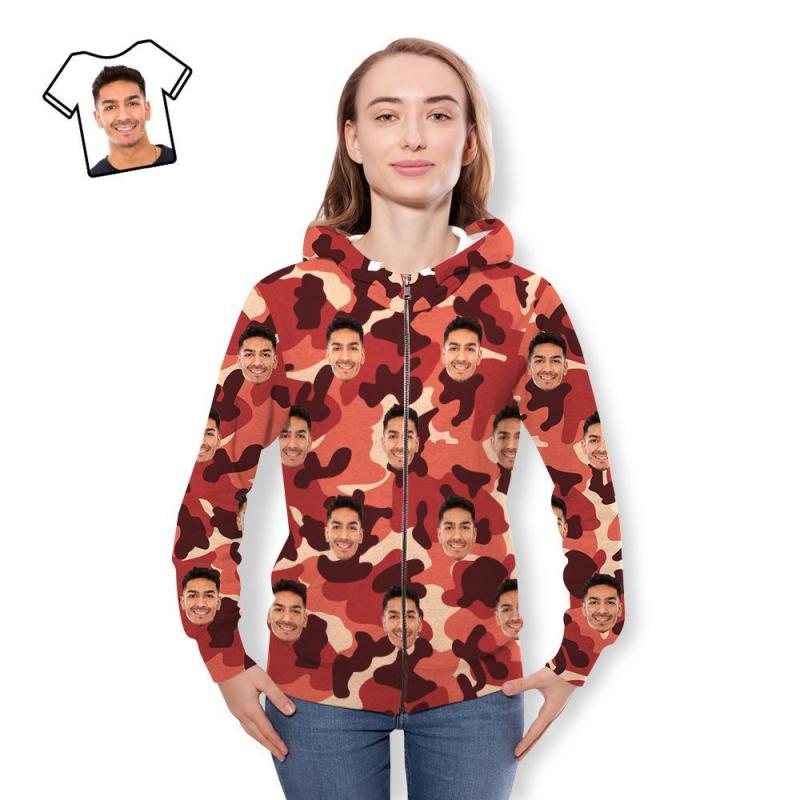 Custom Face Unisex Hoodie Casual Printed Light Coral Camouflage