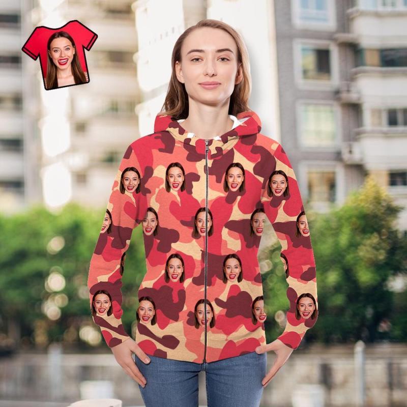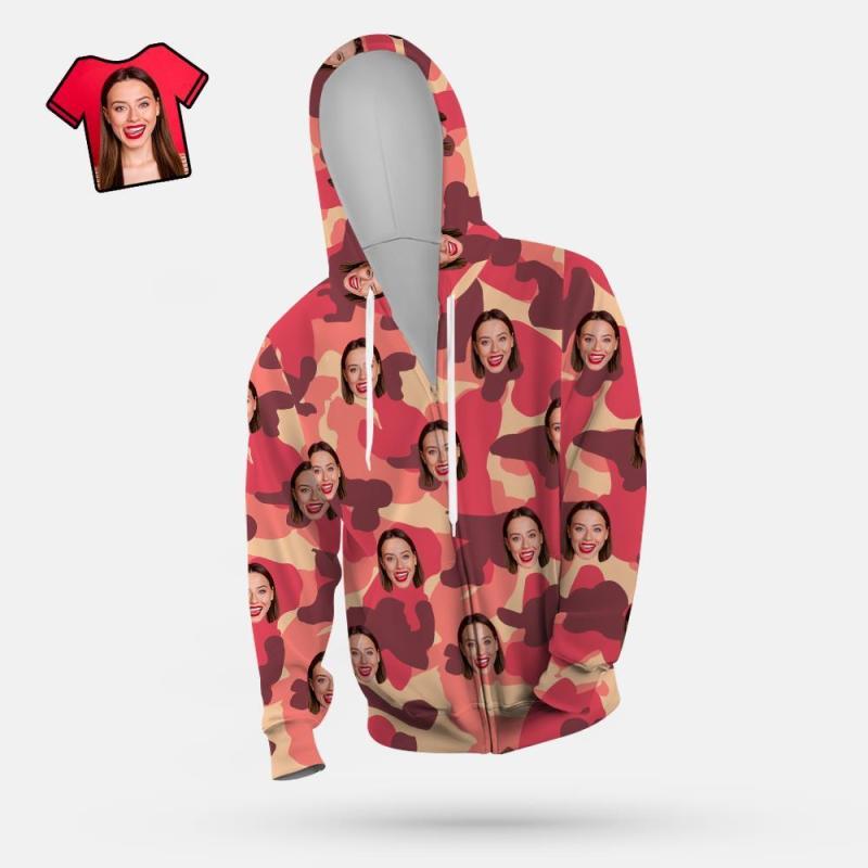 Custom Face Unisex Hoodie Casual Printed Misty Rose Camouflage