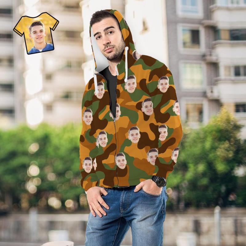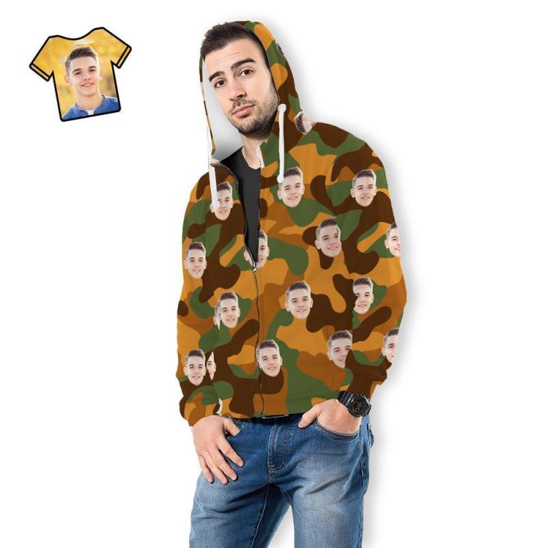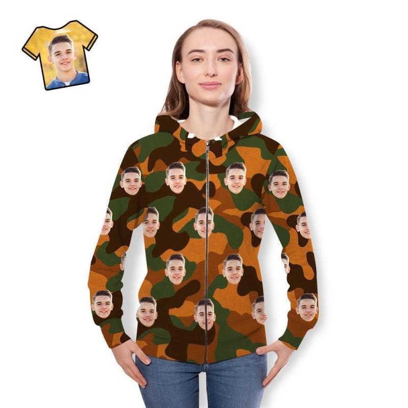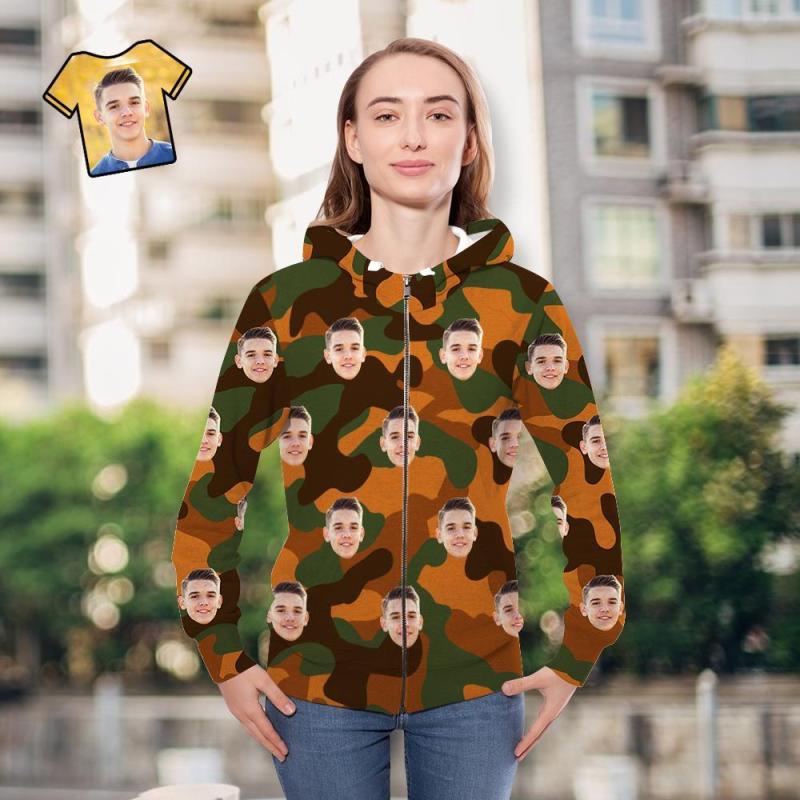 Custom Face Unisex Hoodie Casual Printed Peru-Green Camouflage