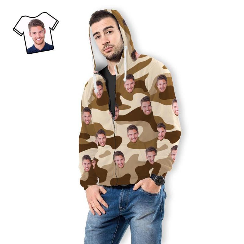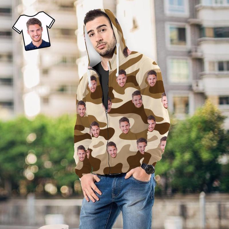 Custom Face Unisex Hoodie Casual Printed Wheat Camouflage