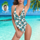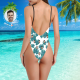 Custom Face V-Neck Bikini Women's Photo One Piece Swimsuit Women's Gifts - Large Leaves