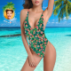 Custom Face V-Neck Bikini Women's Photo One Piece Swimsuit Women's Gifts - Leaves & Flowers