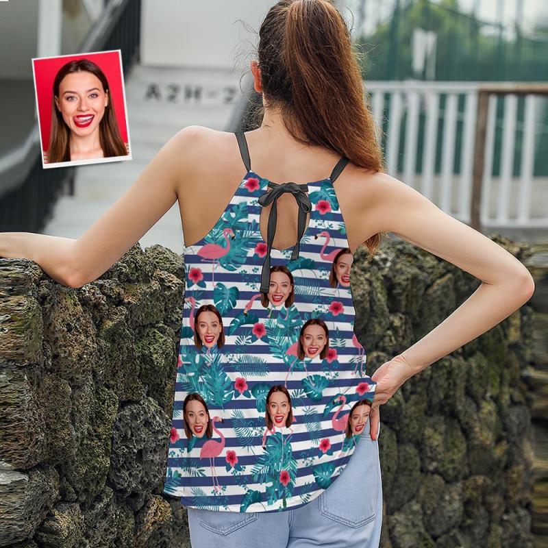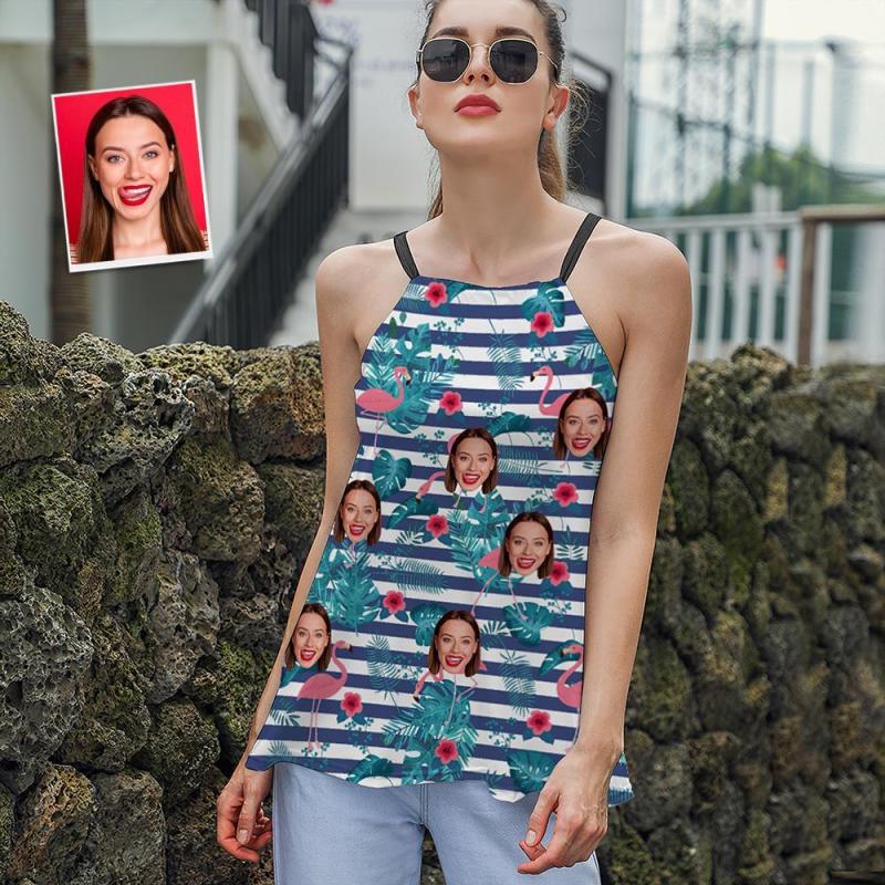 Custom Face Women's Strappy Camisoles Summer Sexy Loose Cute Tanks Tops - Hawaiian Flamingo