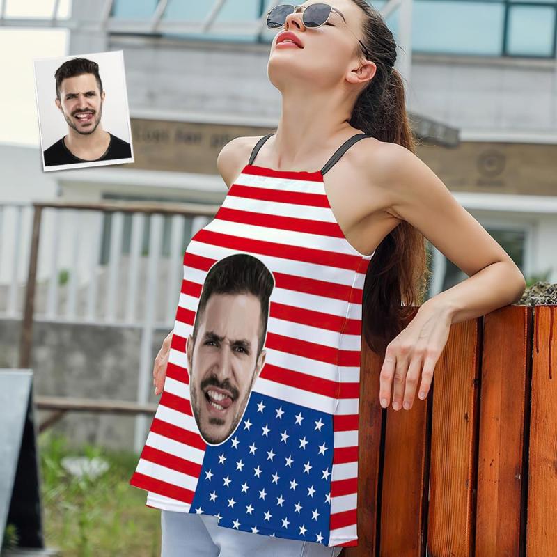 Custom Face Women's Strappy Camisoles Summer Sexy Loose Cute Tanks Tops - USA Flag