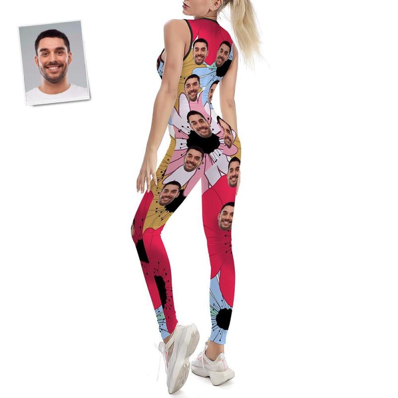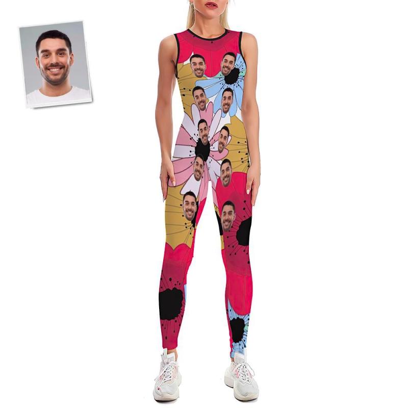 Custom Face Women's Yoga Jumpsuit Stretch Yoga Gym Fitness Dancing Costume - Floral