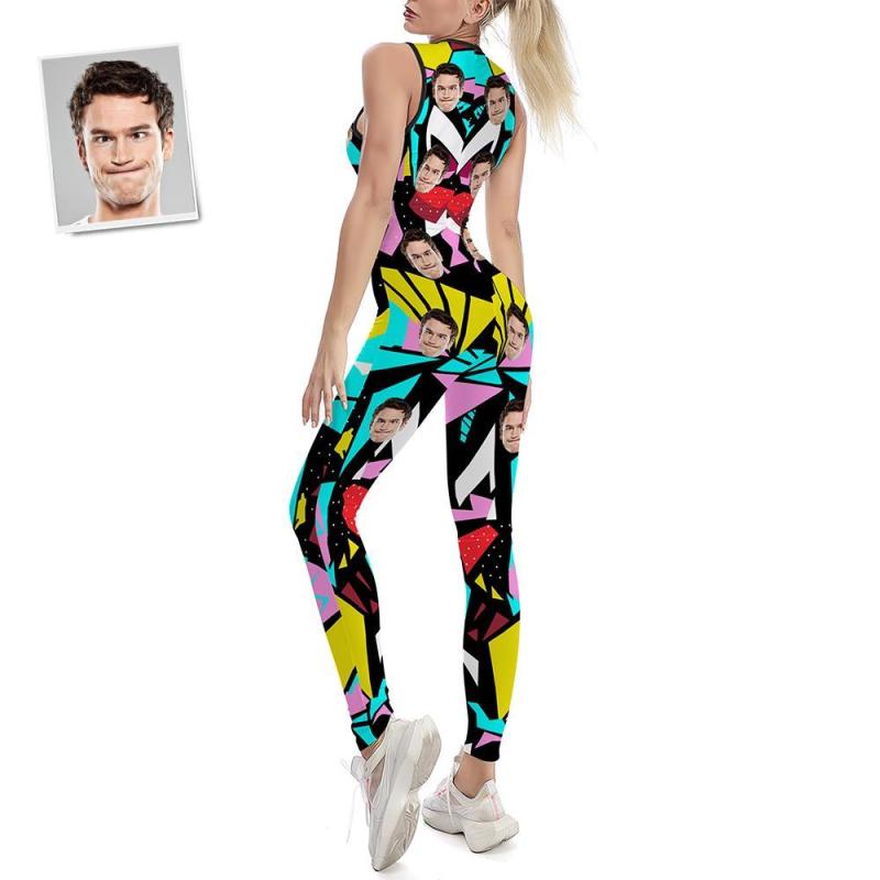 Custom Face Women's Yoga Jumpsuit Stretch Yoga Gym Fitness Dancing Costume - Floral Catsuit