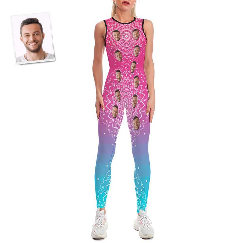 Custom Face Women's Yoga Jumpsuit Stretch Yoga Gym Fitness Dancing Costume - Mandala
