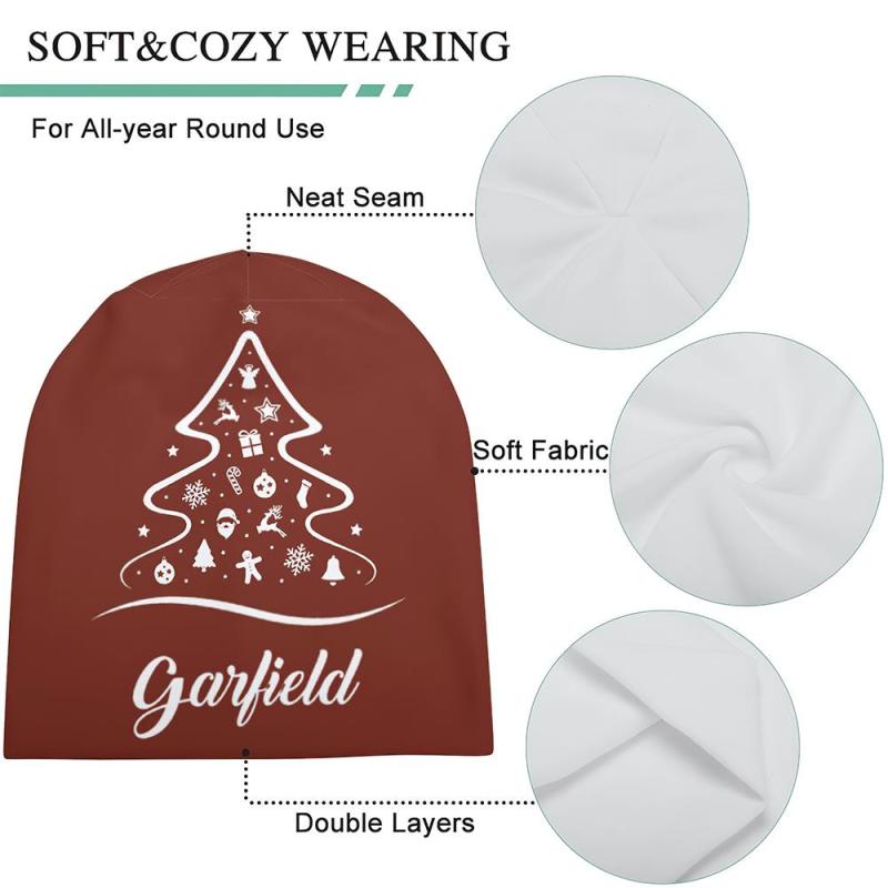 Custom Full Print Pullover Cap with Text Personalized Beanie Hats Christmas Gift for Him - Christmas Tree