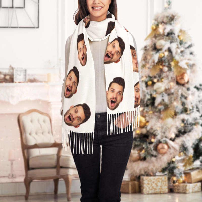 Custom Funny Scarf Personalized Face Unisex Soft Warm Fringe Scarf Shawl Gift for Winter