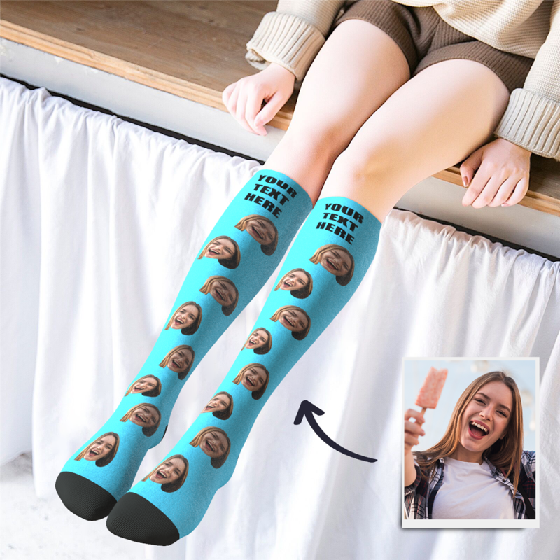 Custom Photo Knee High Socks Colorful With Your Text - MyPhotoSocks