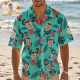 Custom Men Green Hawaiian Laves And Flowers Hawaiian Shirts Face Shirt Hawaii Pattern Shirt Gift for Summer Vibe Holiday